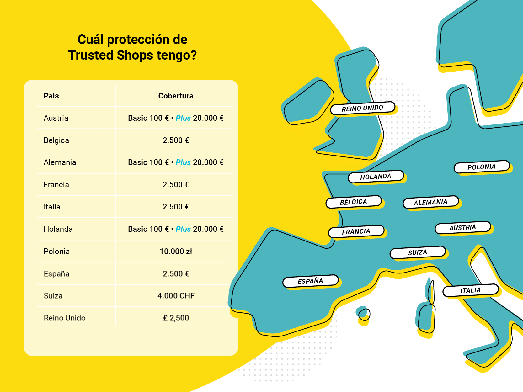 Ofrecemos diferentes servicios para diversos mercados. Siempre indicamos la cobertura de tu protección en la confirmación que recibes de Trusted Shops por correo electrónico.